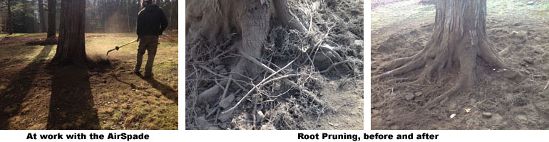 Soil and Root Management: Healthy soil for healthy plants. From correcting nutrient deficiencies to improving soil structure, we have the solutions for the long-term health of your trees and landscape. One of the most important and most often overlooked aspects of tree care, the root system requires maintenance just like the crown. Using specialized high pressure air tools, we can alleviate compacted soil so roots can thrive. Periodic inspection and maintenance of the area where the tree meets the earth can do wonders for the prevention of disease and decline. We can also help mitigate conflicts between tree roots and construction projects, underground utilities, foundations, and hardscapes.